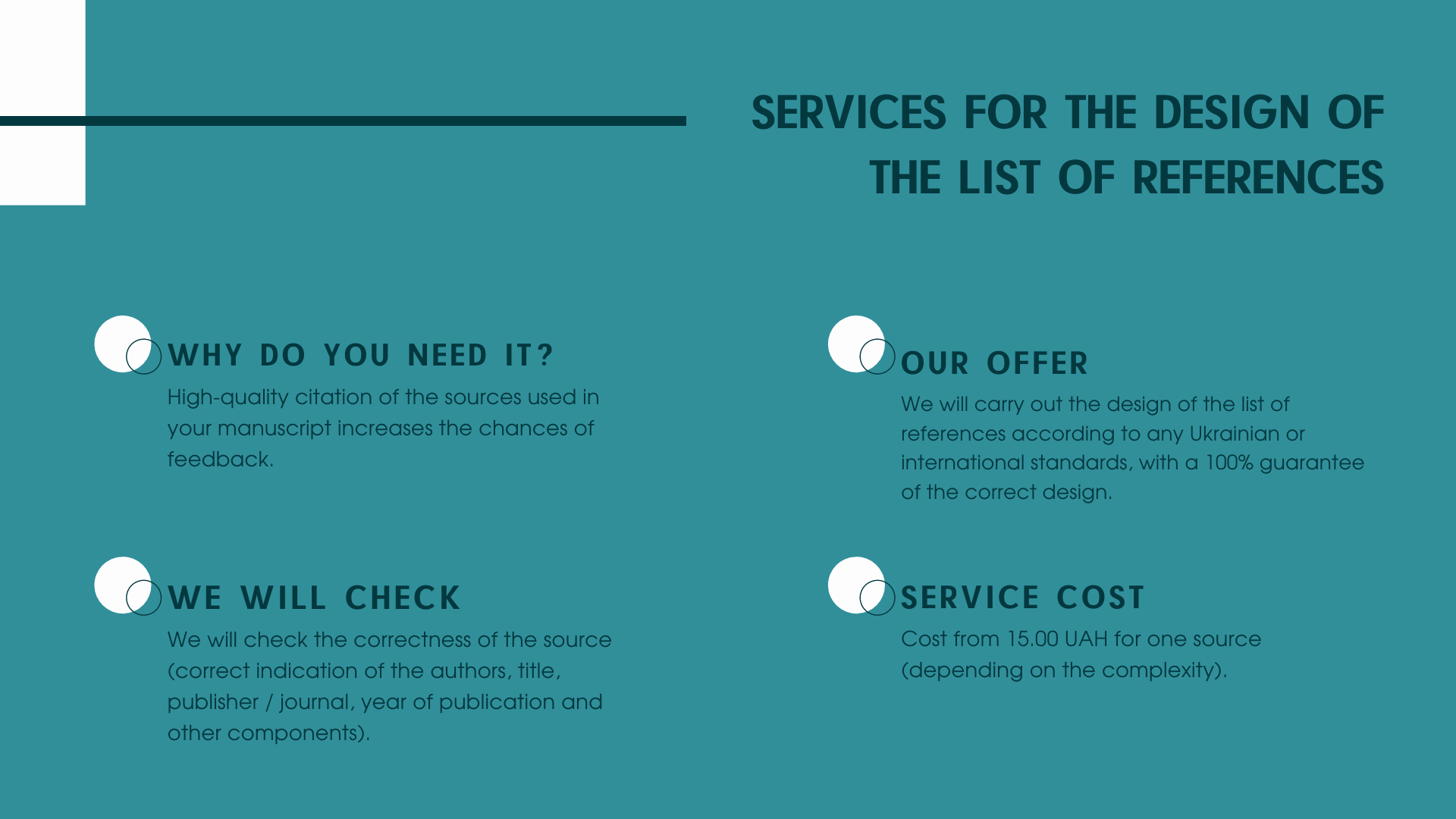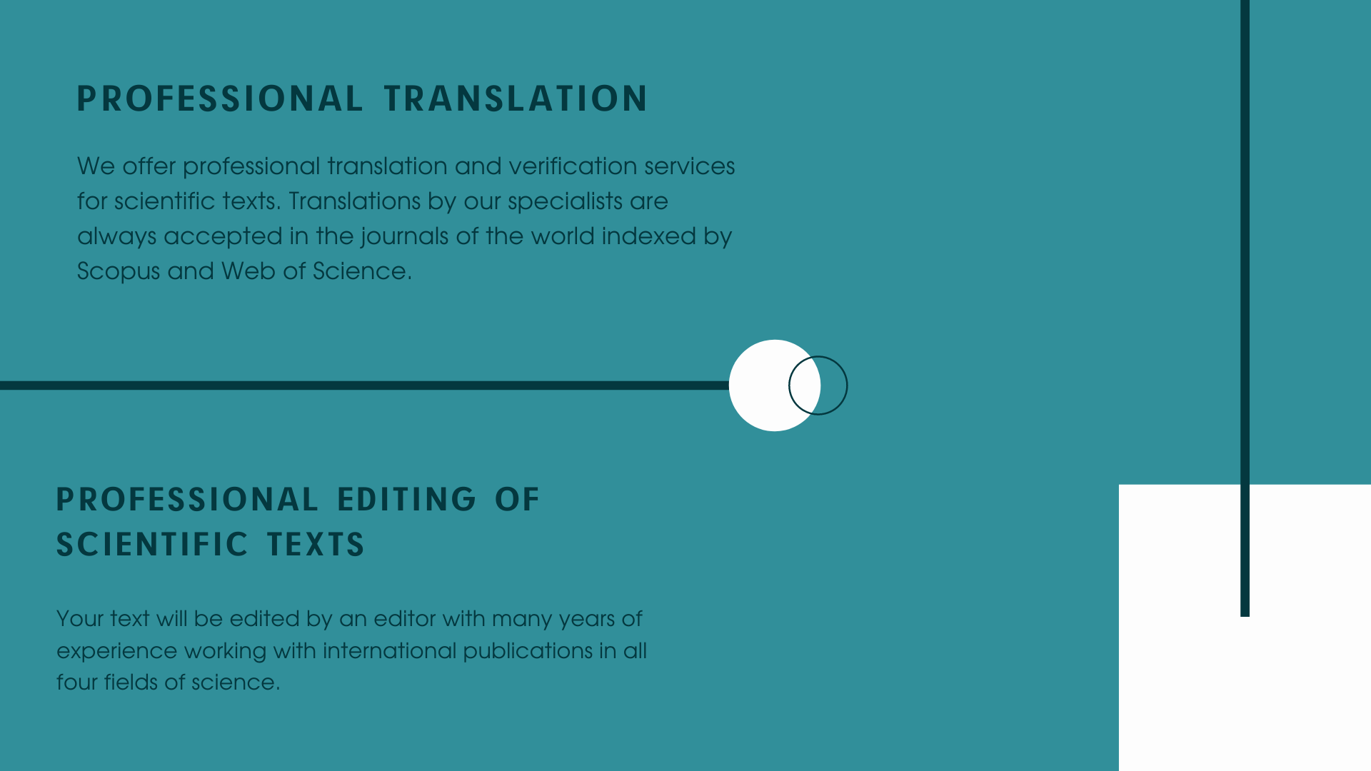 We have been working in the publishing market since 2013. About tens of thousands of manuscripts, figures and tables, tens of thousands of formulas and millions of characters in translated text in all areas of science, hundreds of thousands of page layout of scientific journals - this is our personal experience.