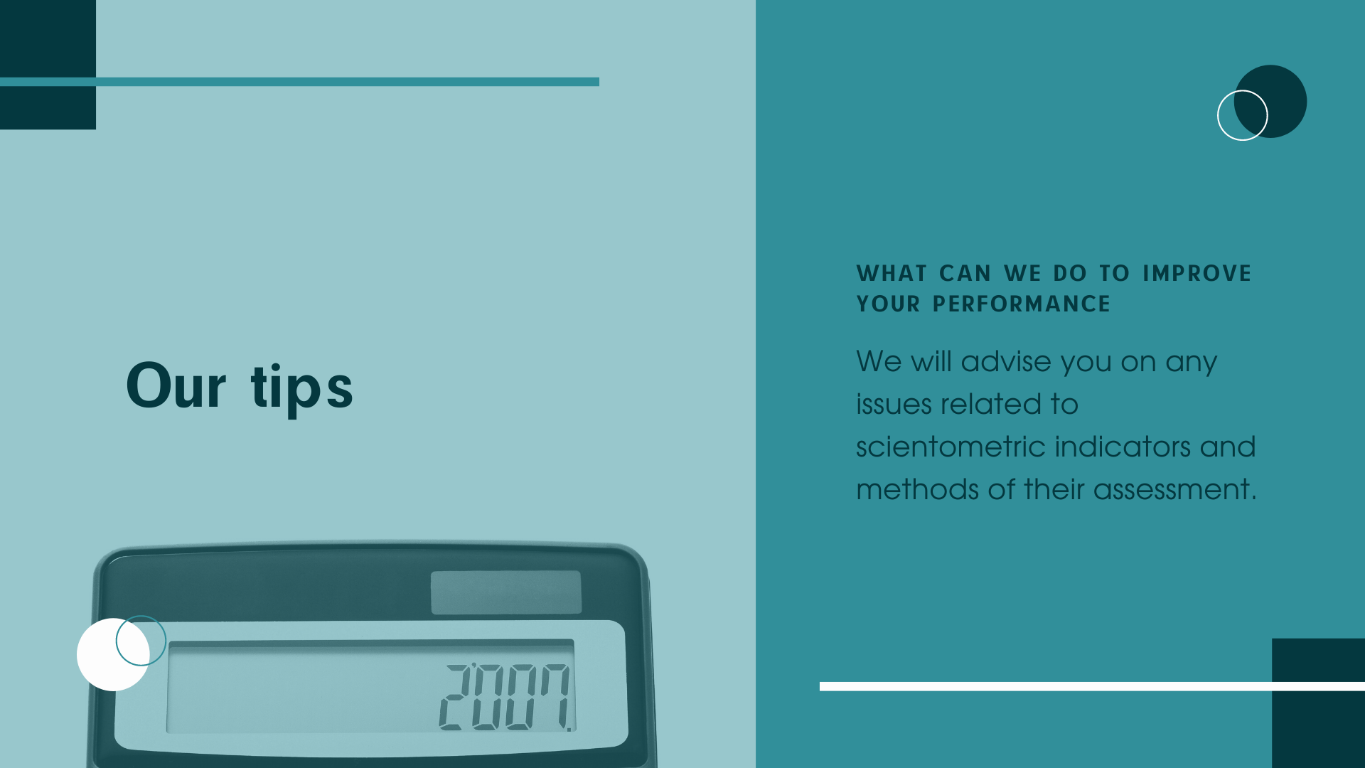 We advise on scientometrics and ranking of scientists.